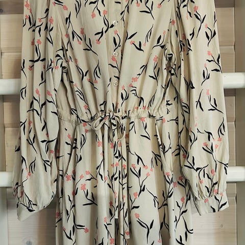 Kauniin mallinen Nanson tunika. Kuviin yritetty saada kivat yksityiskohdat, mm. sivuilla olevat taskut, edessä sauma. Värit musta ja violetti.