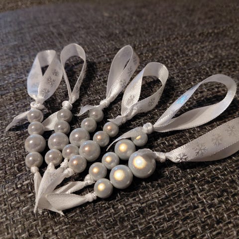 Erilaisia helmiketjuja eri väreissä kuten vaaleanpunainen, sininen, vihreä, keltainen ja musta. Ketjut ovat erikokoisia ja sopivat korujen valmistukseen tai askarteluun.
