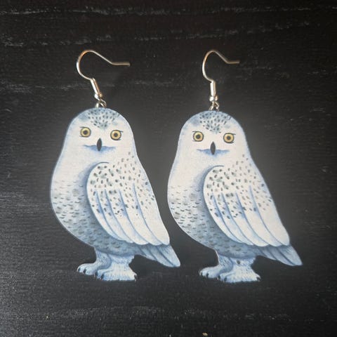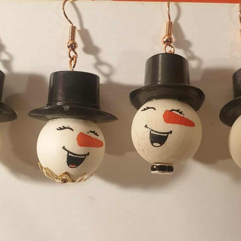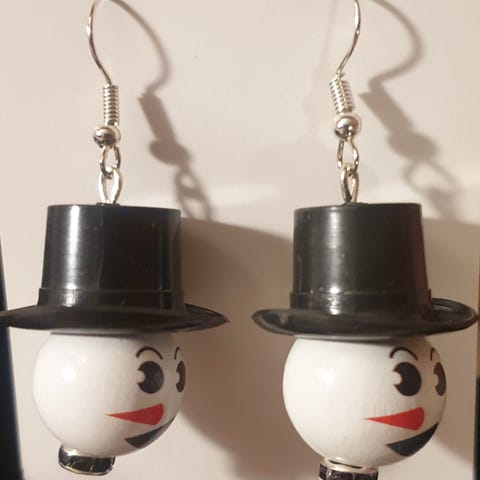 Lumi-ukko korvakorut,puuhelmet 1,8cmx 2cm. Hattu muovia