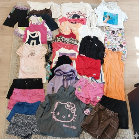Setti paitoja, huppareita, neuletakkeja ja housuja