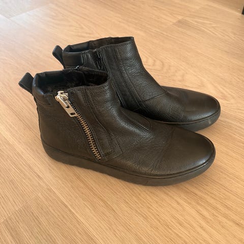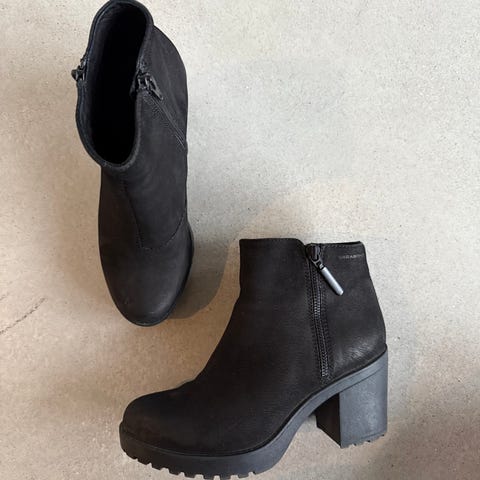 Mustat Vagabond-nillkurit kokoa 37. Nahkaa. Hyvässä kunnossa. Korko 6 cm, Käytetty vain vähän. Sivulla vetoketju ja takana koristevetoketju.