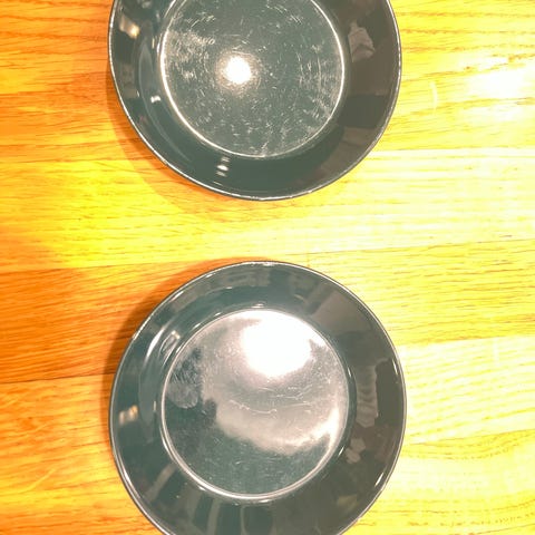Arabian Teema (tai Kilta) lautaset, 2kpl yhteishintaan, halkaisija 14cm, kahvileivälle tai kannun alle? väri tummanvihreä. Materiaali keraaminen. Olleet käytössä, vähän lasitus kulunut.