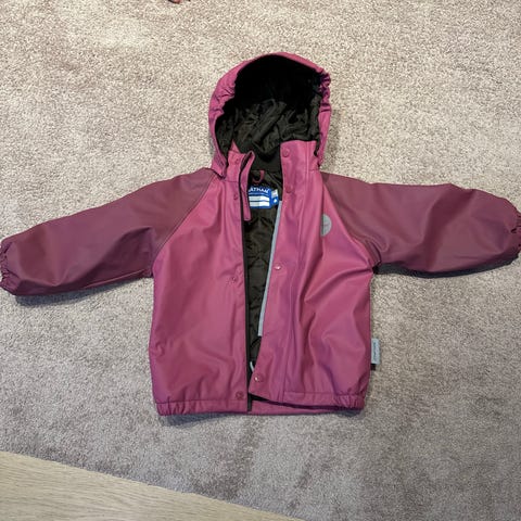Lasten sadetakki vaaleanpunaisella ja sinisellä värillä, koko 98. Takissa on irrotettava huppu ja heijastavia yksityiskohtia turvallisuutta lisäämässä. Materiaalit ja rakenne sopivat lasten ulkoiluun ja suojaavat sääolosuhteilta.