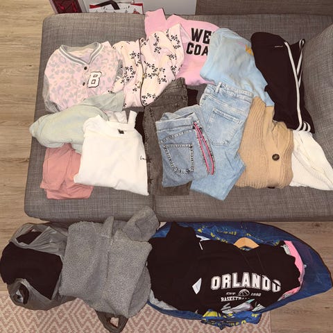 Vaatteet on käytettyjä. Toisia enempi. Varmasti löytyy pesu/käyttönyppyä. Menee hyvin vielä käytössä perusvaatteina. Merkkeinä perus h&m,veromoda,fbsister ym