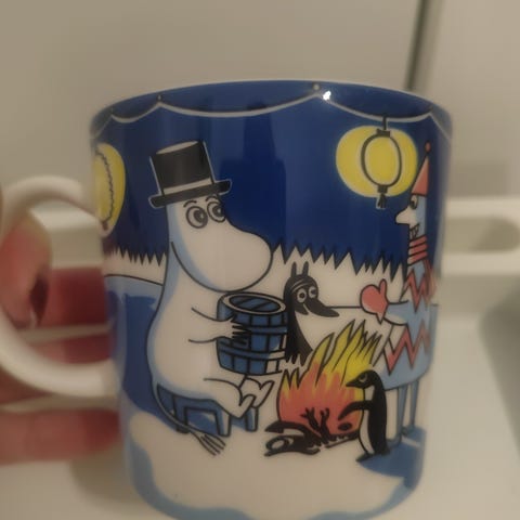 Myydään käyttämätön Talven ihmeet Muumi-muki. Tarra paikallaan.