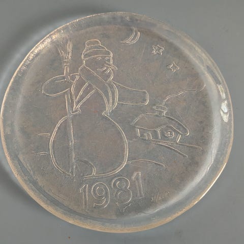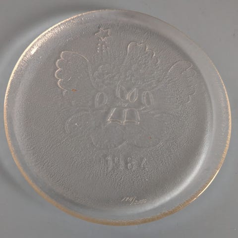 Ei iskemiä tai halkeamia. Pinnassa naarmua. On todennäköisesti ollut käytössä ruokailussa.