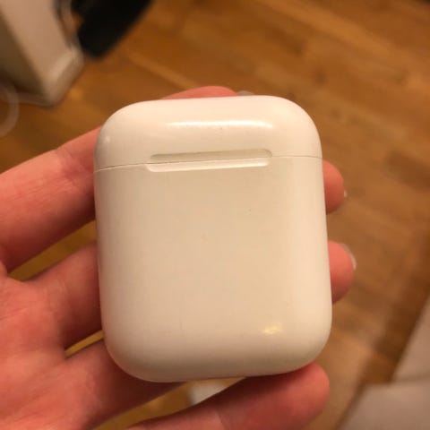 Hyväkuntoiset Apple Airpods Gen1 kuulokkeet. Kotelossa hieman likaa ja käytönjälkeä, itse kuulokkeet puhdistettu ja desifioitu.