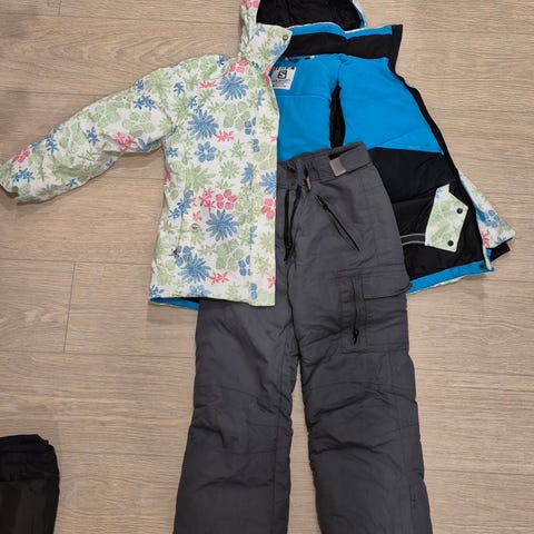 Laskettelutakki-ja henkselihousut, koko 140. Woxo.