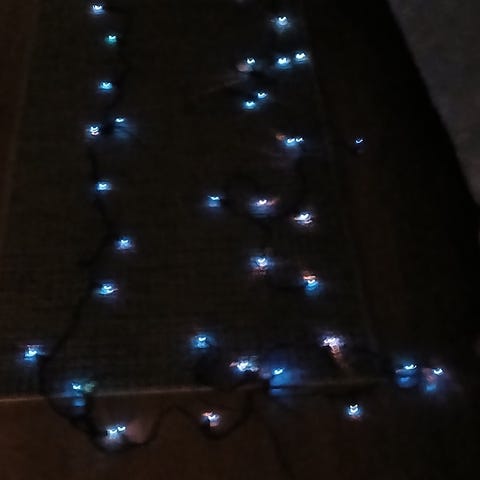 Aidot värilliset kasari-koristevalot, jotka toimivat yhä hyvin! Muistatko, miten näiden tähti-sovitteet tippuivat välillä ja miten kirpeältä ne tuntuivat jalkapohjissa 😅 Tai miten kylmään ikkunaan teipattuna tarkka kuvio repsotti sieltä täältä kun teipin liima kostui ja irtosi.