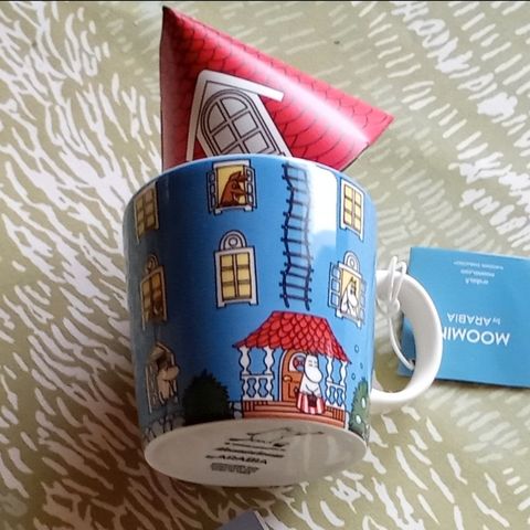 Myydään lähes käyttämätön Muumitalo Muumi-muki. Katto kunnossa.