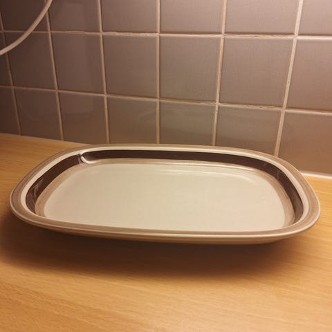 Arabia Pirtti vintage uunivuoka, väriltään ruskea ja valkoinen. Koko n. 8cm x 18cm