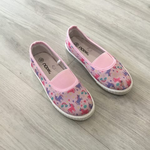 H&M:n karvavuorelliset yksisarviskengät, koko 30/31. Kunto uuden veroinen, ainoastaan pohjan sivussa näkyy paikoin pientä tummentumaa.