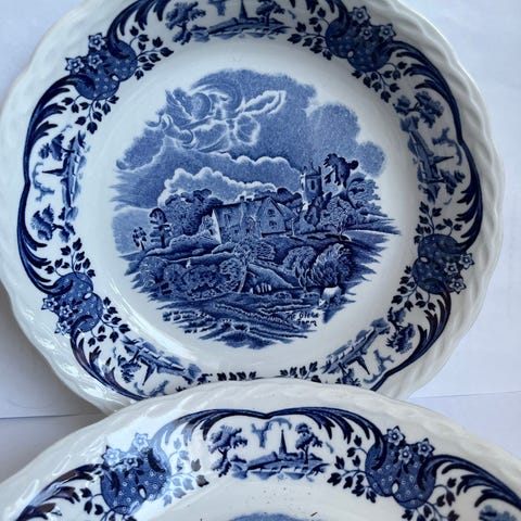 Merkki: Dorset, Wood & Sons. Kaksi matalaa lautasta, joista toisesta puuttuu pieni pala reunan alta ( kuva). Tämän saa ilmaiseksi. Lautasen leveys 22,5 cm.