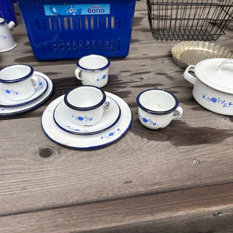 myydään retrot kuvanmukaiset emali astiat vaikka leikkimökkiin.