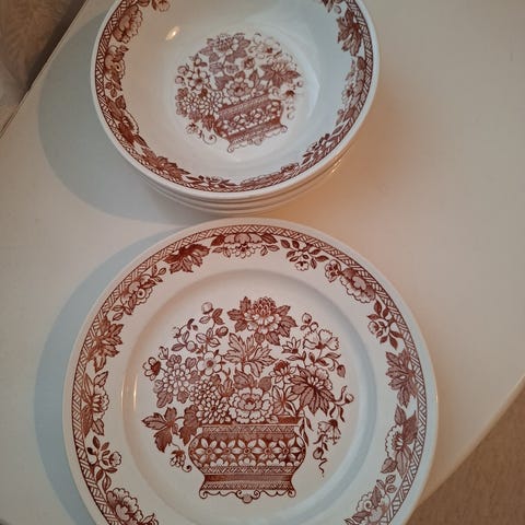 Kathie Winkle, Ironstone, Broadhurst, matala hyväkuntoinen lautanen englantilaista keramiikkaa. Leveys 24 cm.