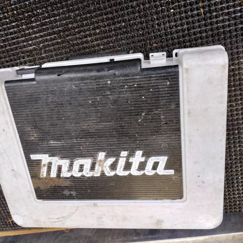 Vanha makitan työkalupakki vanhanmallin makitan lampulle ja porakoneelle. Klipsit toimii ja avautuu hyvin, ulkokuori vain työmaita nähnyt.
