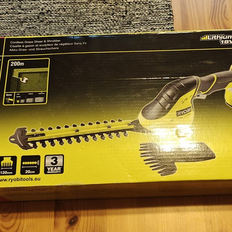 Viime kesänä uutena ostettu erittäin kätevä akkukäyttöinen pensasleikkuri, jota on ehditty käyttää vain pari kertaa, kunnes tuli muutto osoitteeseen, jossa ei ole pensasaitaa. Bauhausin 5-vuoden takuu voimassa siis vuoteen 2030 asti. Saat kuitin mukaan.