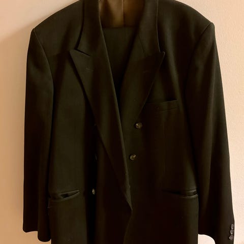 Hyvä kuntoinen vintage puku. Housuja kavennettu noin 32 vyötärölle sopiviksi. Olen itse 187cm ja 72kg ja puku sopii minulle. Nouto tai postitus.