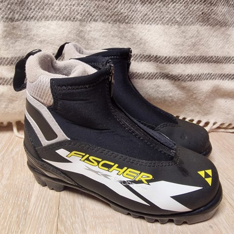 Fischer lasten NNN-murtsikamonot, koko 30. Väri musta. Kengissä on vetoketjullinen suojus ja nauhat.