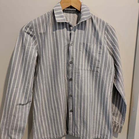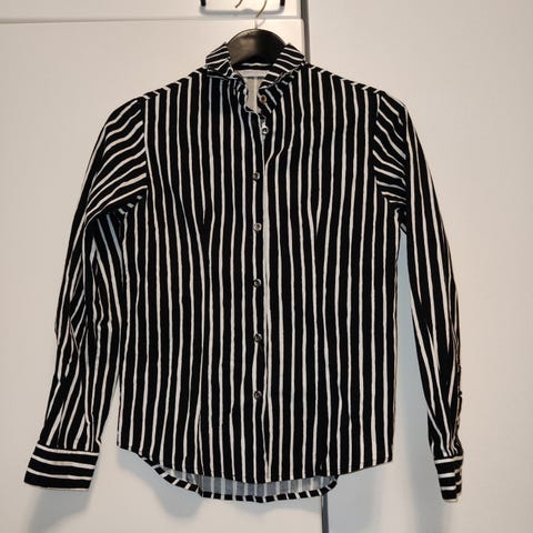 Vaalea liila Marimekko Jokapoika kokoa XXS. Siisti. Pieni musta piste taskussa (en tiedä mistä tullut) ja alimman napin ympärillä pieni repeämä -kts viimeiset kuvat