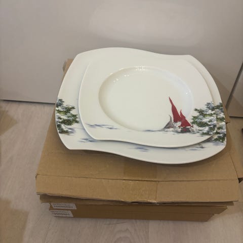 Käyttämättömät lautaset. Lautasia on 4 kpl. 80€/4 kpl tai 25€/kpl.