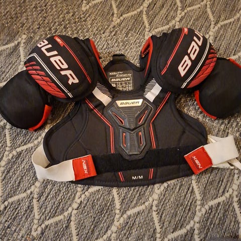 Myydään lasten jääkiekkoon rintapanssari. Ollut käytössä 6-8 vuotiailla