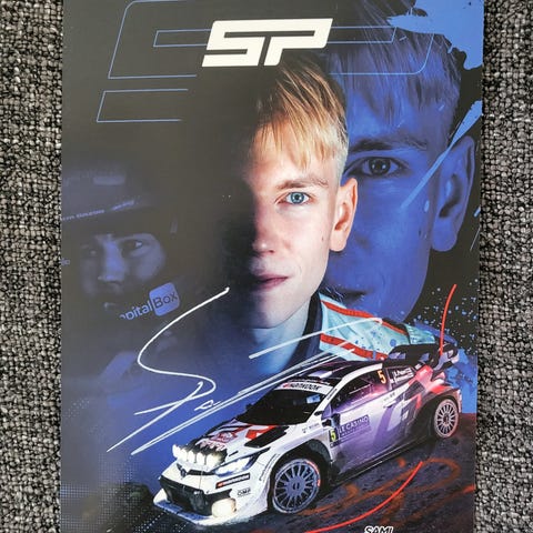 Mario Andretti nimikirjoitus kuvassa. 29x21 cm. Saatu postitse.