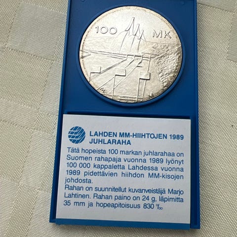 Hopearaha 100 mk Hiihdon MM-kisat Lahti 1989