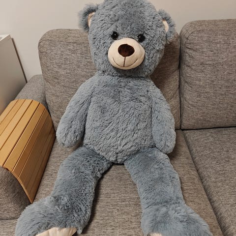 Nalle pehmolelu, ruskea väri, pehmeä materiaali. Sopii lasten leikkeihin ja keräilyyn. Nallen korkeus 63 cm.