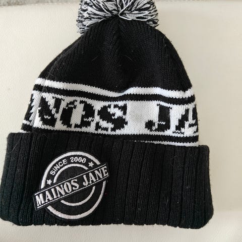 Erilaisia pipoja. Osa mainospipoja: Finnair (myyty), Blaupunkt, Varta
