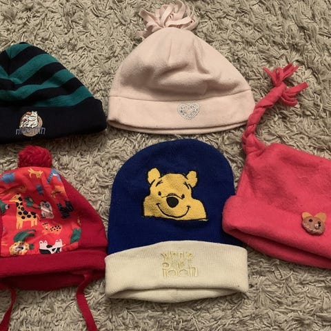 Lapselle talvipäähine pipo Nalle Puh, koirat, nalle, useita tupsuja, 5eur