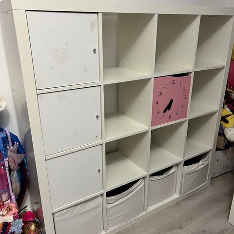 Myydään Ikean keltainen Kallax kuvassa olevilla laatikoilla.