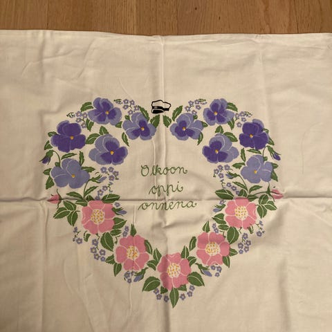 Tyynyliina, johon on painettu ylioppilaslakin kuva.