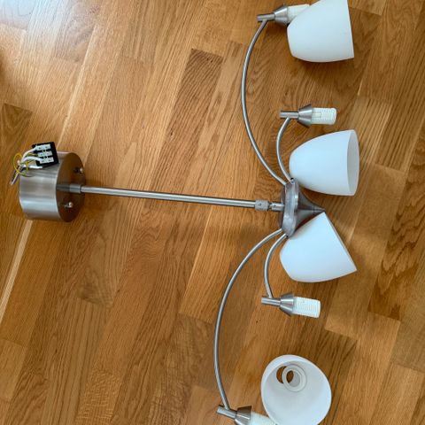 Kattovalaisin, leveys 80cm. Mustaa metallia ja köyttä. Antiikkilamput. Sokeripal/töpselikiinnitys.