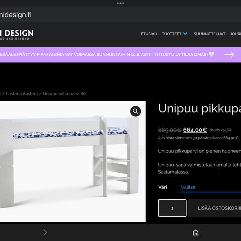 Katso myös toinen ilmoitus sängyn päädyistä, jolla saa unipuu sängyn korotettua pikkuparveksi.