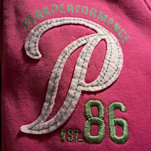Naisten Peak Performanse huppari koko M. Edessä molemmin puolin vetoketjulliset taskut.