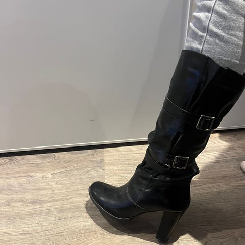 Myynnissä erittäin hyväkuntoiset Carmela-merkin pitkävartiset, nauhalliset nahkasaappaat.