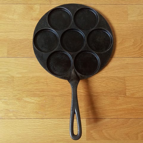Vanha, jopa antiikkinen, valurautainen Högfors 2 -lettupannu. 7-reikäinen