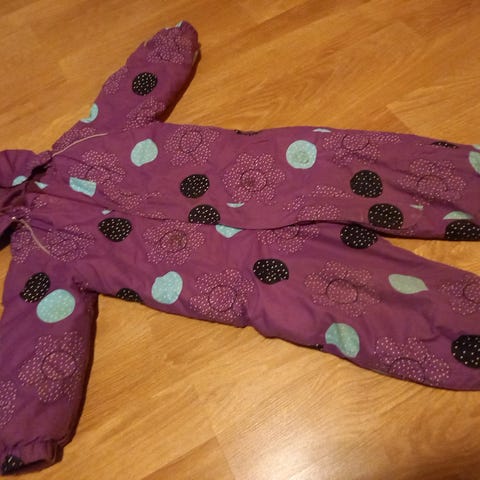 Ostettu uutena mummolaan varahaalariksi ja ehti päälle vain muutaman kerran. Ulkopuolelta en keksi mitään moitetta, takamus, polvet, kaulus ja hihansuut siistit. Lahkeissa lumilukot eli ns. tuplalahkeet. Niissä huomasin jalkalenkkien kohdalla ja sivussa hieman rispaumaa kummassakin jalassa. Ks. Kuvat.