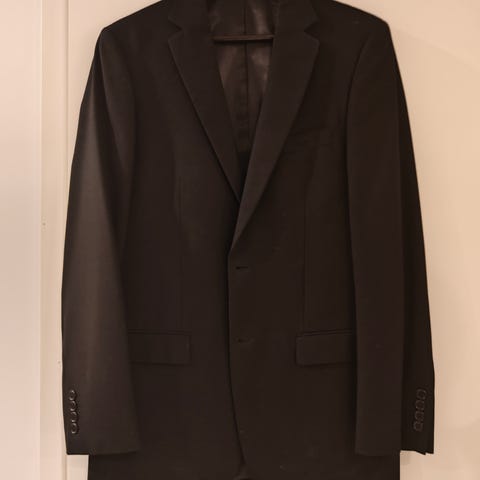 Erittäin hyväkuntoinen ja vähän käytetty miesten puvuntakki. Väri: harmaa, mustat kaulukset.