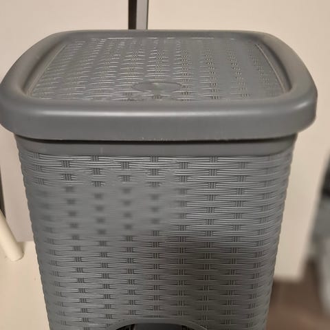 Tästä uusi harmaa häkkiroskis. Roskis ei miellyttänyt omaan silmään sisustuksen kanssa joten päädyin samanlaiseen mutta mustaan. Tästä seuraavan käytettäväksi.