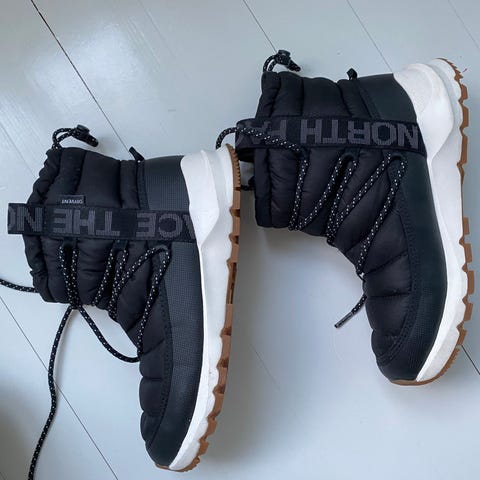 The North Face talvikengät, koko 39, musta väri. Kengät on suunniteltu kylmiin olosuhteisiin ja niissä on lämmin eristys. Materiaali kestävää ja vettähylkivää, sopivat talvikäyttöön.