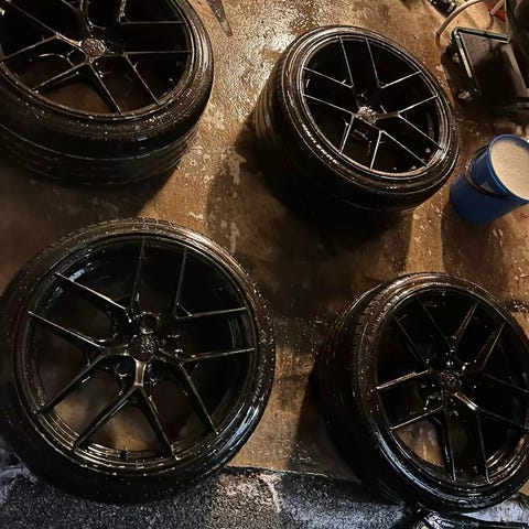 Vanteet suorat, eikä ole ajettu kanttarirallia. Yhdestä vanteesta puuttuu muovinen keskilätkä.