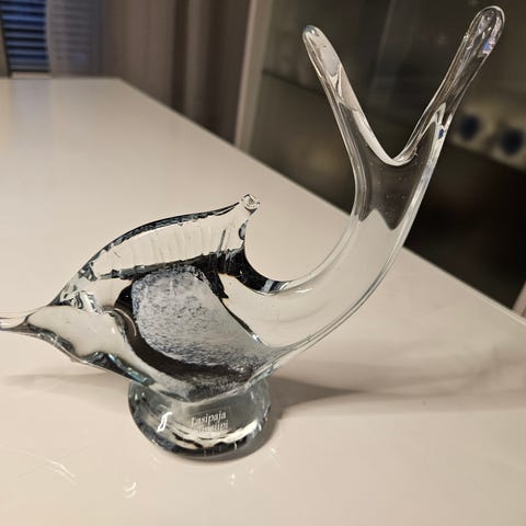 Hyväkuntoinen (luultavasti) Bergdalan lasitehtaan valmistama punainen lasikala.