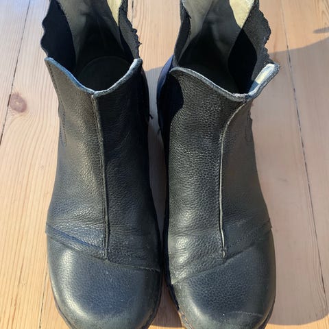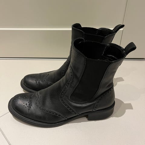 Kuvanmukaiset kohtalaisessa kunnossa olevat, melko paljon käytetyt Oscaria Chalsea-nilkkurit / saappaat k.39. Ruskea patinoitu nahka.