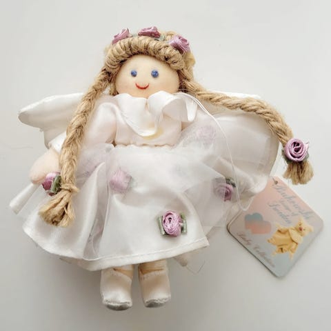 Siistissä kunnossa olevat mutta vanhat enkelinalle ja kissa pehmolelut.