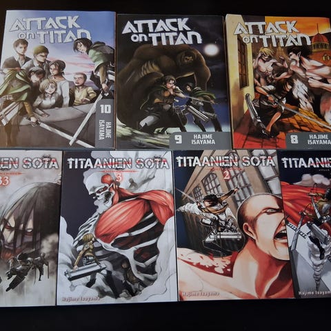 OSTAN Attack on Titan -mangasarjan sarjakuvia kolmannestatoista osasta eteenpäin aina viimeiseen osaan asti (34). Hintaa saa tarjota ehdottaessa, kerro myös, mitkä osat myisit <3 (kuva mallina, ei tarvitse olla valmis, laatikossa oleva setti)