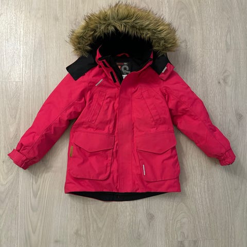 Myydään Reiman laadukas talvitakki, koko 122. Lämmin talvitakki n. -5 / -20 asteen keleihin. Väri vaaleanpunainen sävykuvioilla.