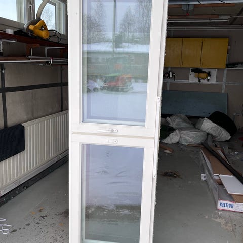Ylimääräiseksi jäänyt uusi MSEA-tuuletusikkuna kooltaan 38 x 79 cm, karmisyvyys 17 cm. Molemmilta puolilta valkoinen. Valmistaja Piklas.
