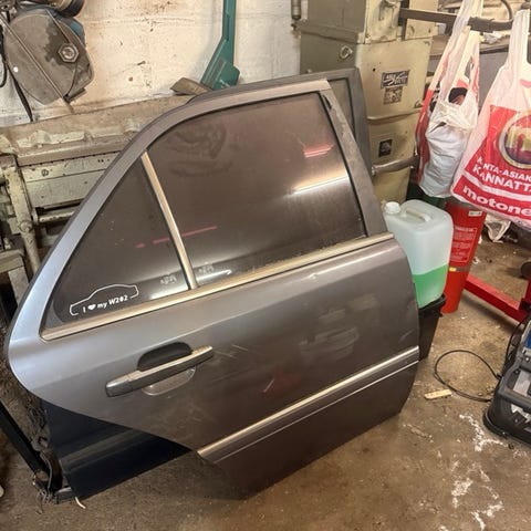Kuvan mukaiset w202 takaovet sähkölaseilla. Hiontavärissä, suorat ja ruosteettomat. Kaikki lasit, tiivisteet ja muut oviin kuuluvat osat on tallessa. Hinta 30e/kpl tai molemmat 50e